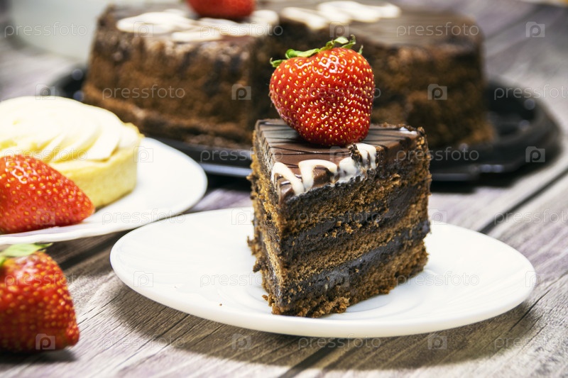 Натюрморт с шоколадным тортом и клубникой