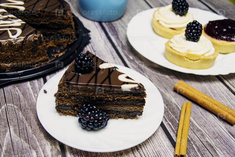 Натюрморт с шоколадным тортом и корицей