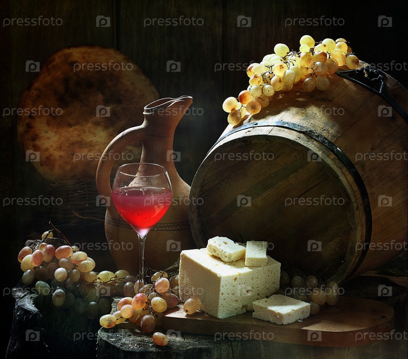 Красное вино с брынзой, виноградом