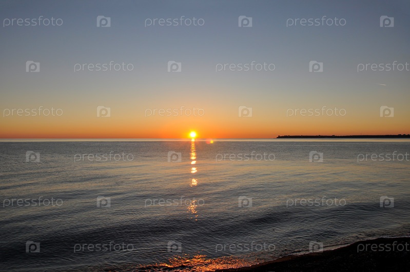 Закат в море. Морской берег вечером. Черное море. Абхазия