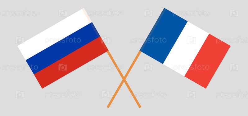 Скрещенные флаги России и Франции. Официальные цвета, корректные пропорции