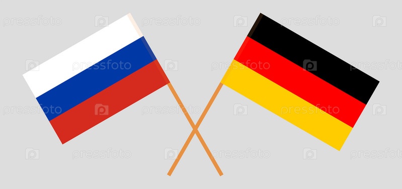 Скрещенные флаги России и Германии. Официальные цвета, корректные пропорции