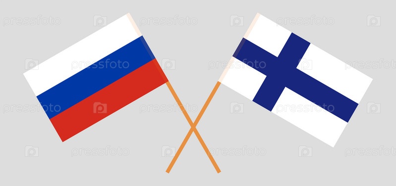 Скрещенные флаги России и Финляндии. Официальные цвета, корректные пропорции. Векторная иллюстрация