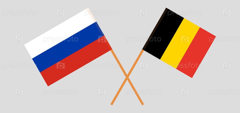 Скрещенные флаги России и Бельгии. Официальные цвета, корректные пропорции