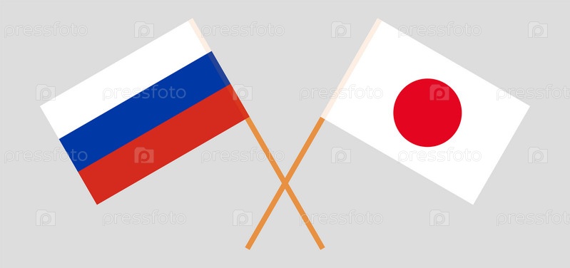 Скрещенные флаги России и Японии. Официальные цвета, корректные пропорции