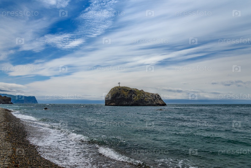 Скала с крестом стоит в море