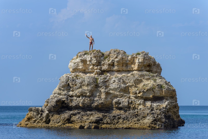 Мужчина стоит на вершине скалы