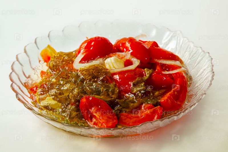 Маринованные помидоры на тарелке домашней кухни