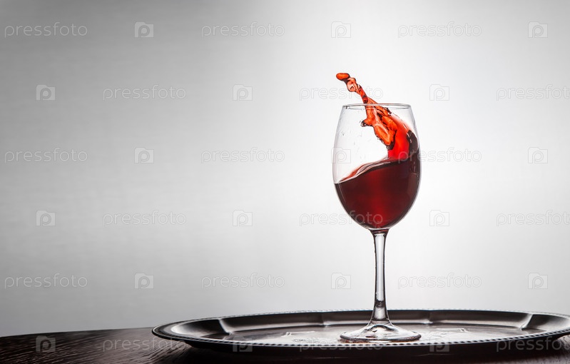 Красное вино выливается из бокала