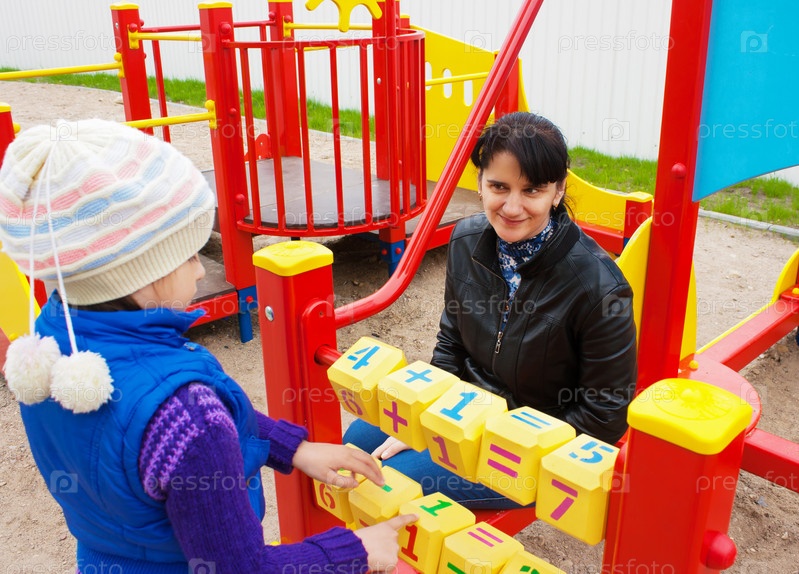 Мать наблюдает за дочерью, гуляют