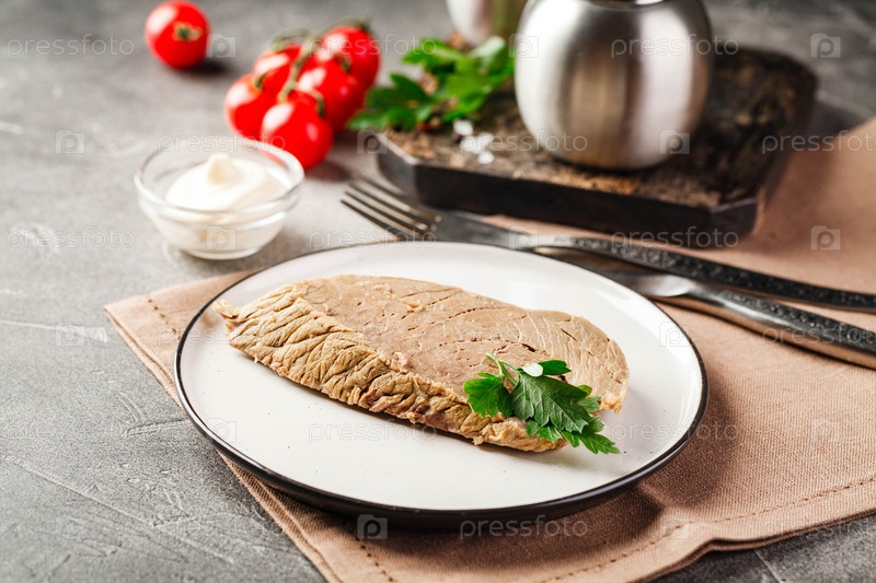 Обеденный стол с тарелкой отварного мяса, комплексное меню для питательного здорового обеда в ресторане, бизнес-ланч