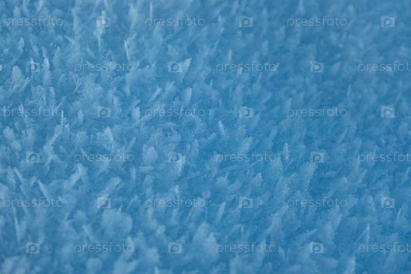 Текстура снега с крупным планом снежинки. Синий макрос изображения абстрактного сугроба. Кристальный снег минимальная текстура чистая. Зимний пейзаж фон