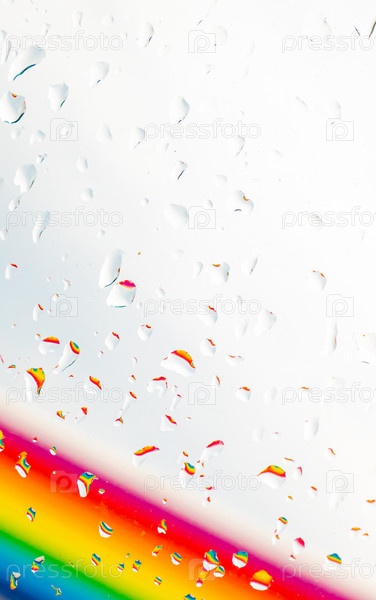 Радуга за стеклом с каплями воды, Точка зрения, из-за стекла с каплями