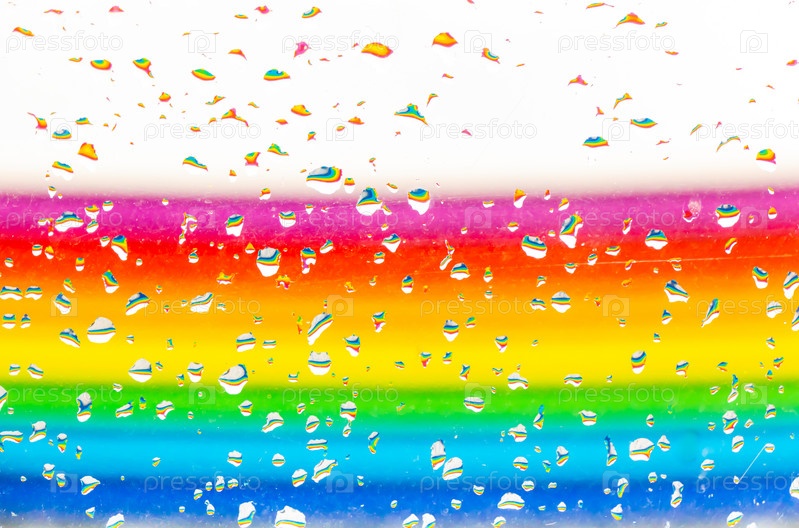 Радуга за стеклом с каплями воды, Точка зрения, из-за стекла с каплями