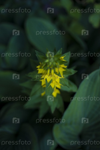 Уличный снимок желтого вербейника на красивой клумбе