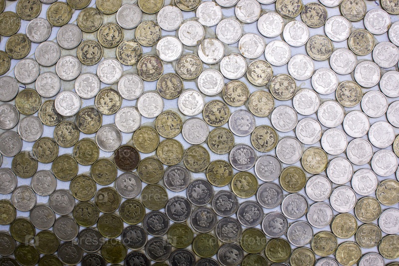 Текстура русских монет. Полный кадр монет, расположенных на столе