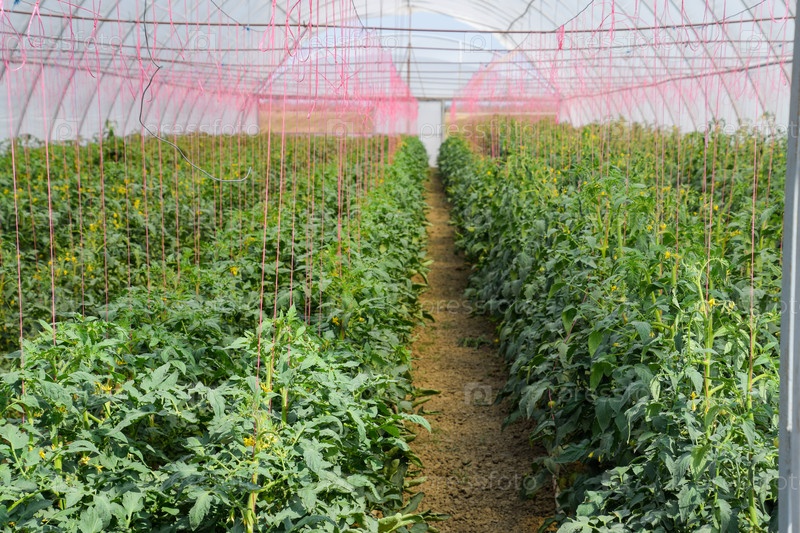 Помидоры в теплице. Подвязанные помидоры в рядах