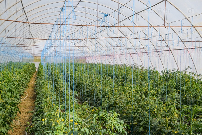 Помидоры в теплице. Подвязанные помидоры в рядах