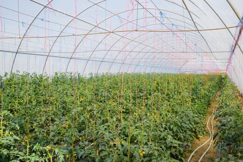 Помидоры в теплице. Подвязанные помидоры в рядах