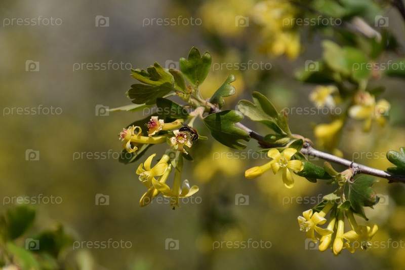 Оса на цветках золотой смородины