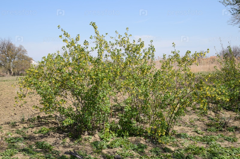 Золотой куст смородины в цвету