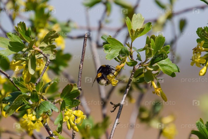 Шмель на цветках золотой смородины
