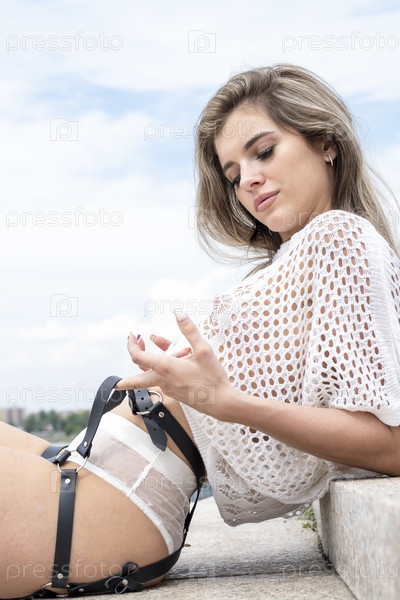 Красивая молодая девушка в белье на набережной города
