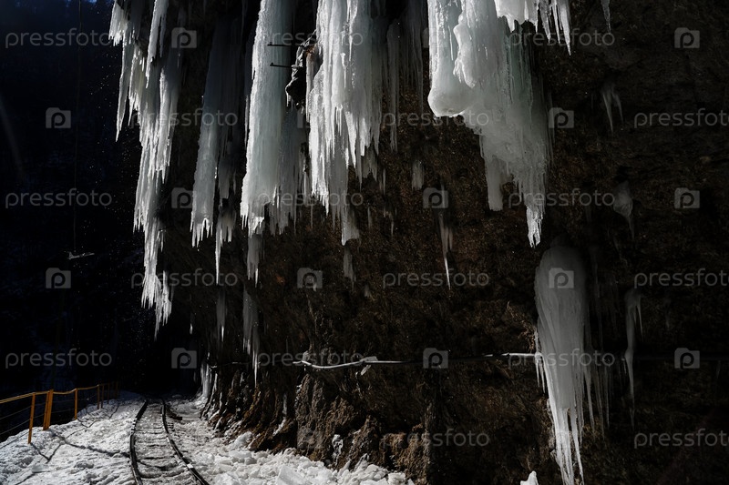 Зимний каньон реки Курджипс. Гуамское ущелье. Россия