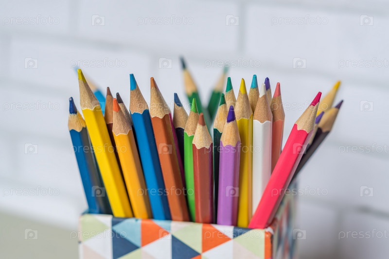 Крупный план разноцветных карандашей в пенале