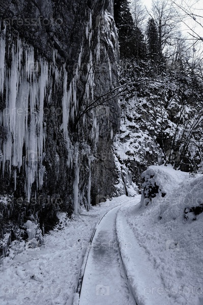 Зимний каньон реки Курджипс. Гуамское ущелье. Россия
