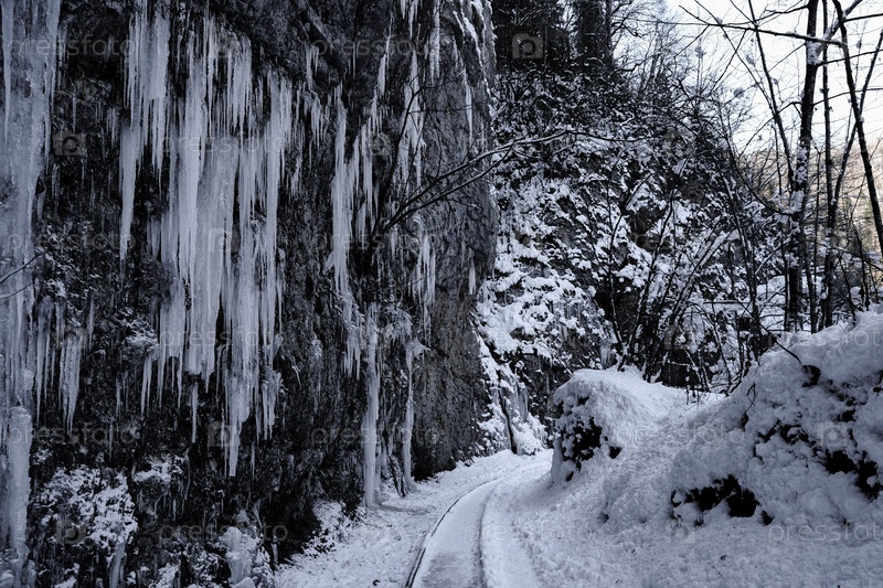 Зимний каньон реки Курджипс. Гуамское ущелье. Россия