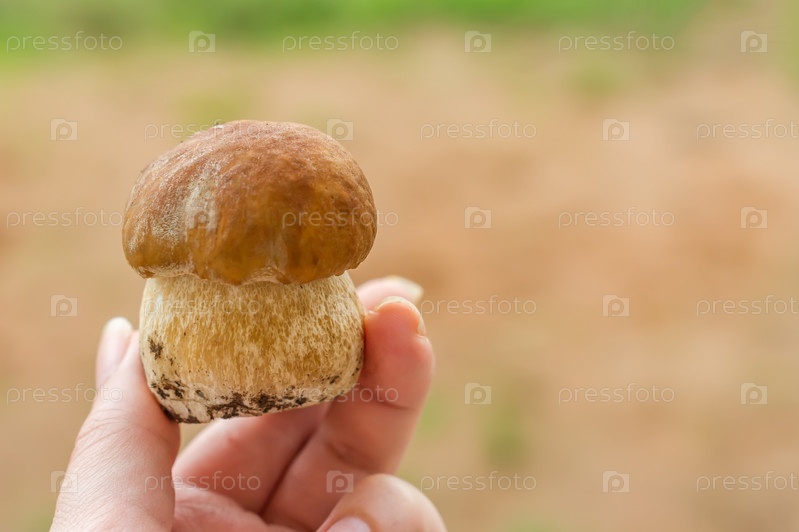 Съедобный гриб Boletus edulis в женской руке