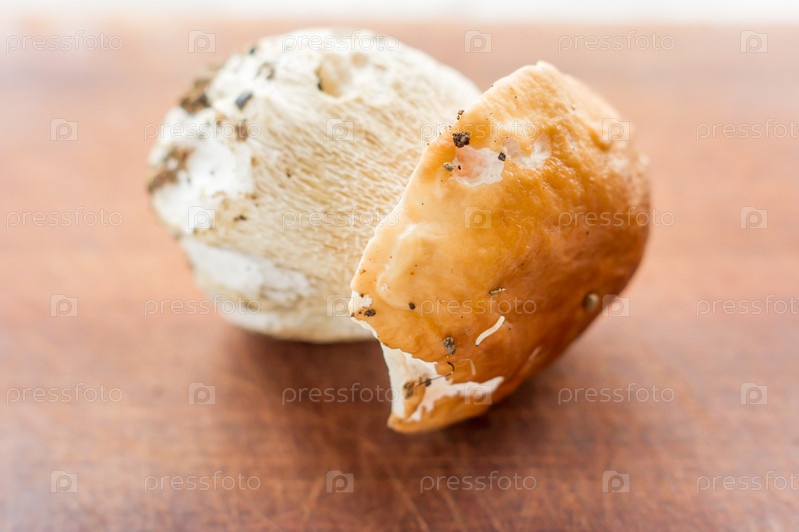 Пищевой гриб Boletus edulis на деревянном кухонном столе