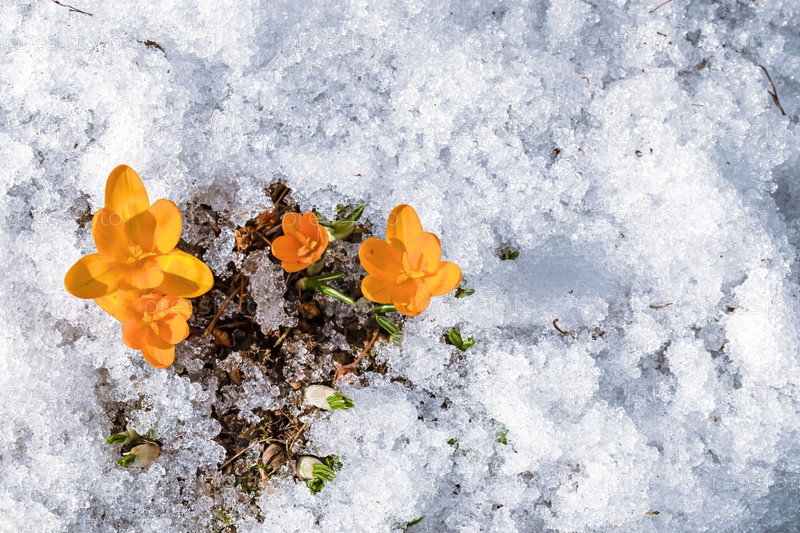Крокусы анкарские желтые — многолетнее клубнелуковичное травянистое растение, вид рода Шафран семейства Ирисовые, или Касатиковые. весенний пейзаж