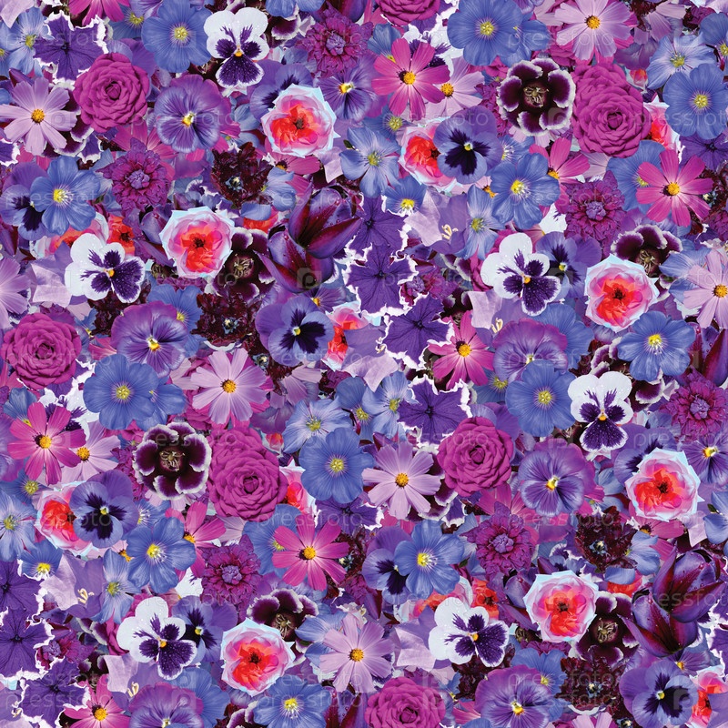 Коллаж с цветочным принтом, бесшовный разноцветный цветочный узор. нежные цветы разного размера и окраски. декоративные элементы для дизайна и творчества