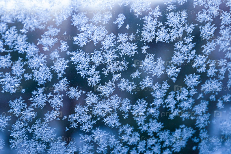 Ярко-синий морозный узор на оконном стекле. абстрактный зимний фон