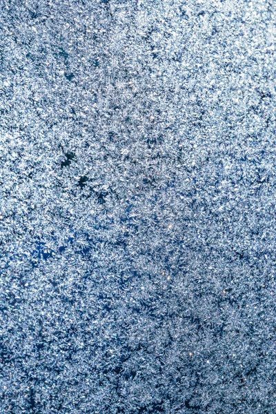 Ярко-синий морозный узор на оконном стекле. абстрактный зимний фон