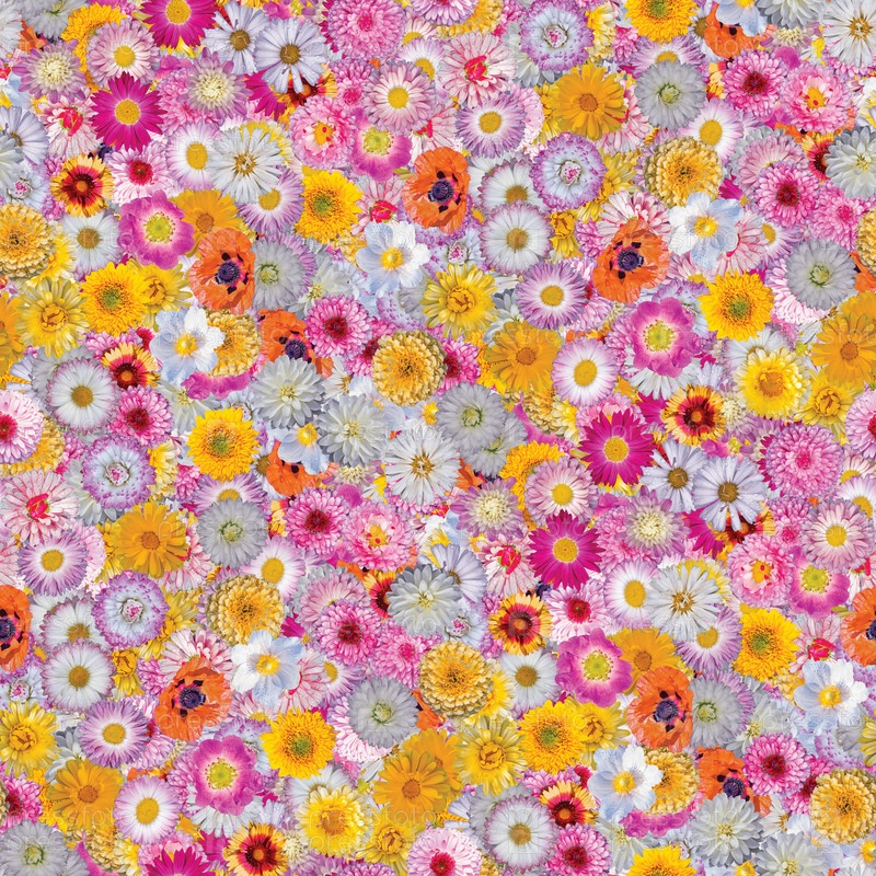 Коллаж с цветочным принтом, бесшовный разноцветный цветочный узор. нежные цветы разного размера и окраски. декоративные элементы для дизайна и творчества