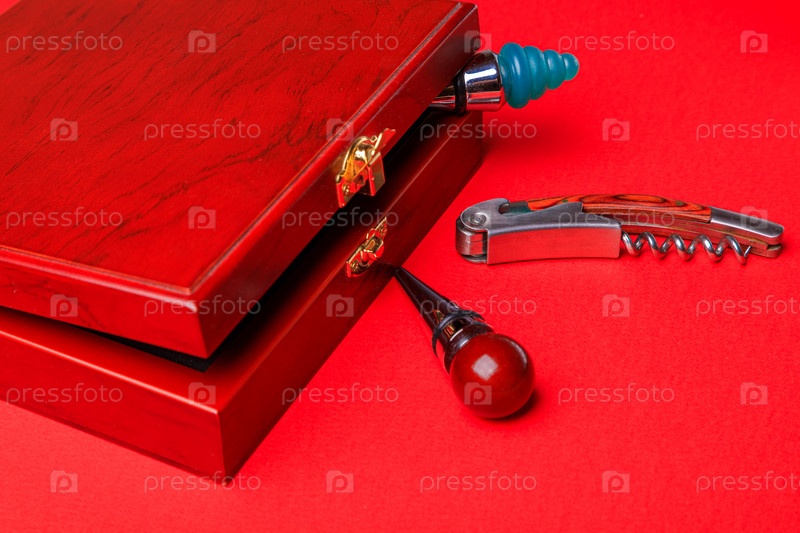 Винные пробки и открывалки для бутылок в деревянном ящике