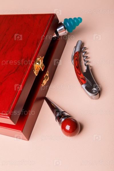 Винные пробки и открывалки для бутылок в деревянном ящике