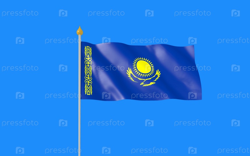 Развязывающийся флаг Казахстана на синем фоне. 3-D рендеринг