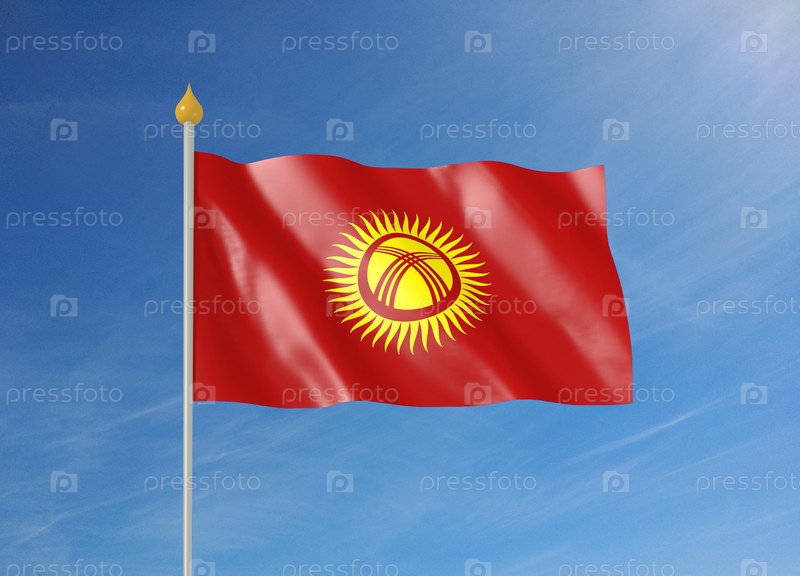 Развевающийся на ветру флаг Киргизии на фоне облаков
