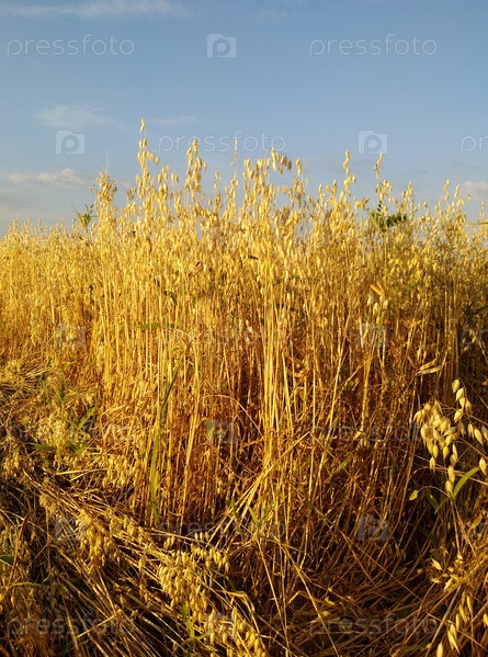 Созревший овес. Золотые колосья в поле