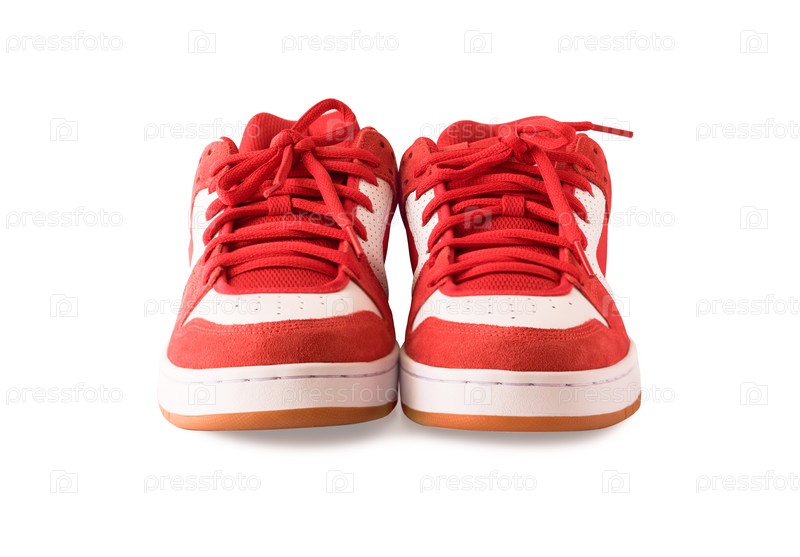 Вид спереди на пару красных кедов или скейтбордов