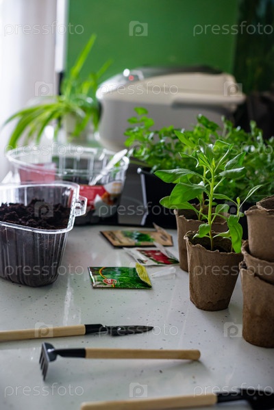 Домашнее садоводство. Полив и пересадка растений в экогоршки. Интерьер домашней кухни, весенняя работа