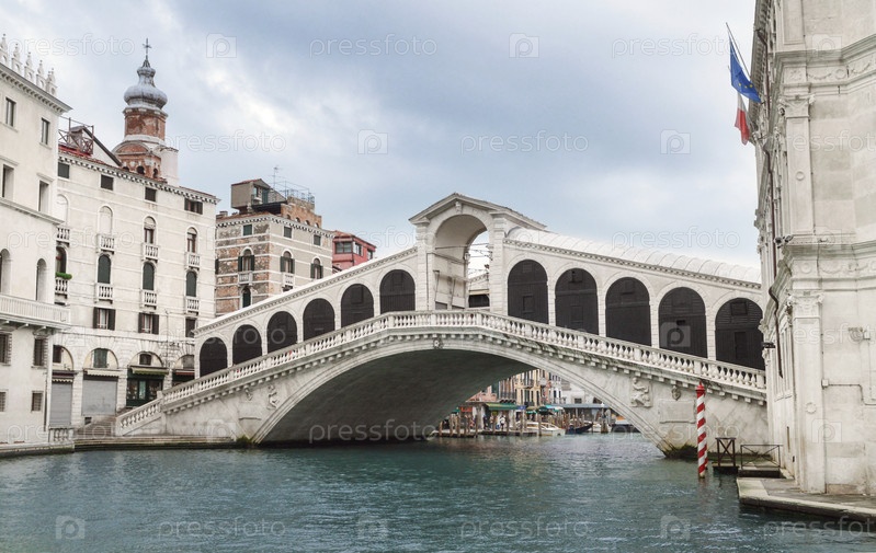 Мост Риальто на фоне облачного неба. Зима в Венеции