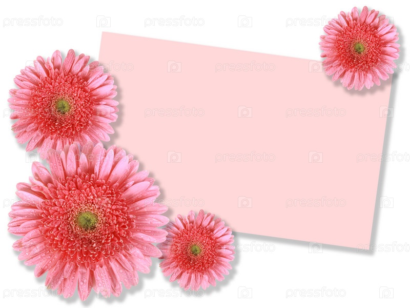 Открытка и розовые цветы