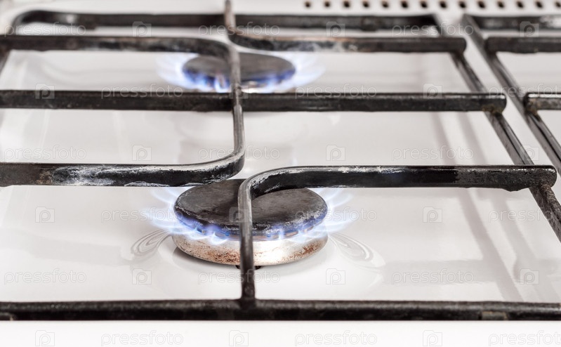 Поверхность газовой плиты с горящими горелками