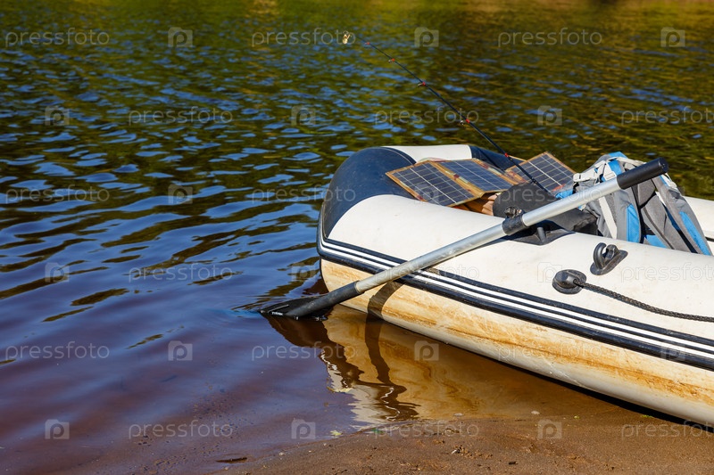 Резиновая надувная лодка на берегу реки