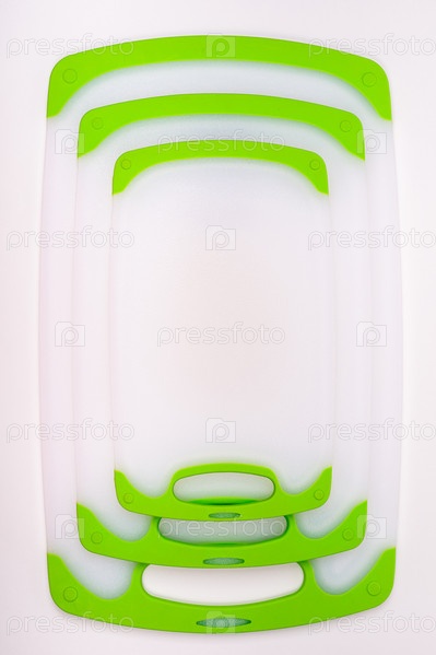 Набор белых кухонных разделочных досок с зелеными ручками для приготовления пищи
